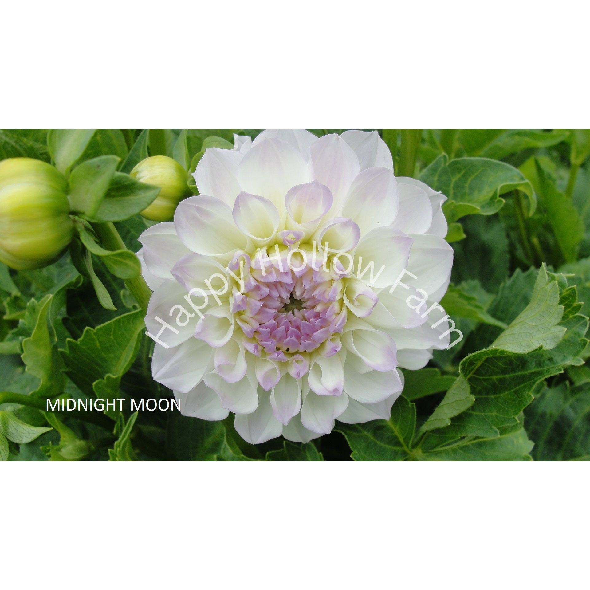 - 4" pristine-white blooms, brushed with a light-lavender on the ends of each petal. Nice cut flower.