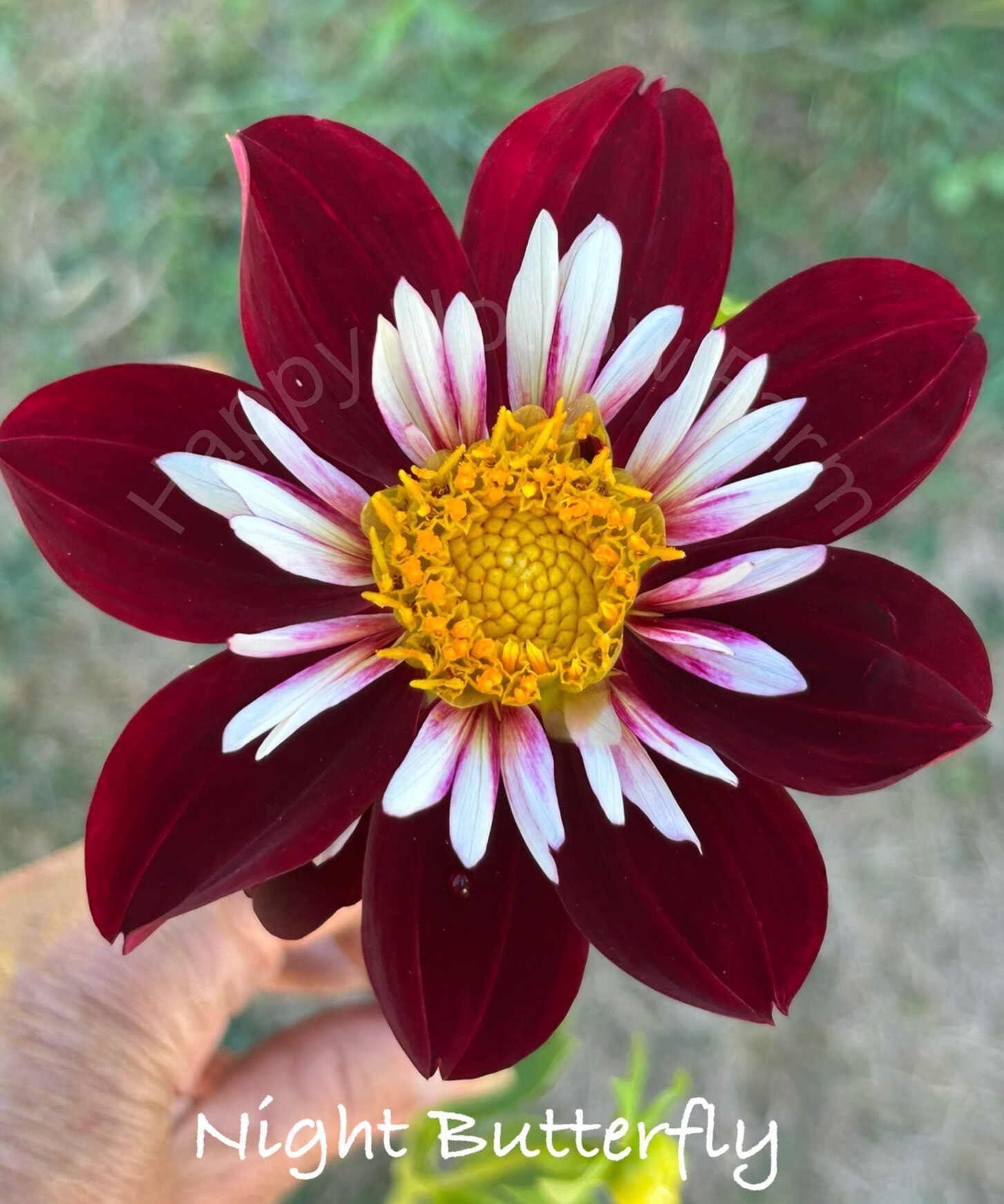 - This variety is a collarette with a single row of velvety-red outer petals and an inner, ruffled collar of white and red petaloids that surround a golden-yellow center