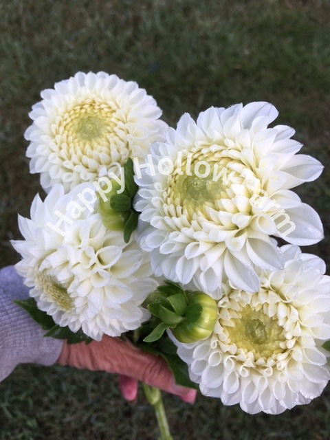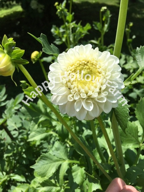 - 3 1/2 to 4" blooms of white in a ball form with a cream colored center. This dahlia will produce lots of flowers for you with that have a great vase life.