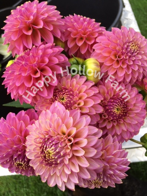 - 4" blossoms of pink are tipped with a spot of gold. Bloomed heavily for me despite adverse weather conditions.