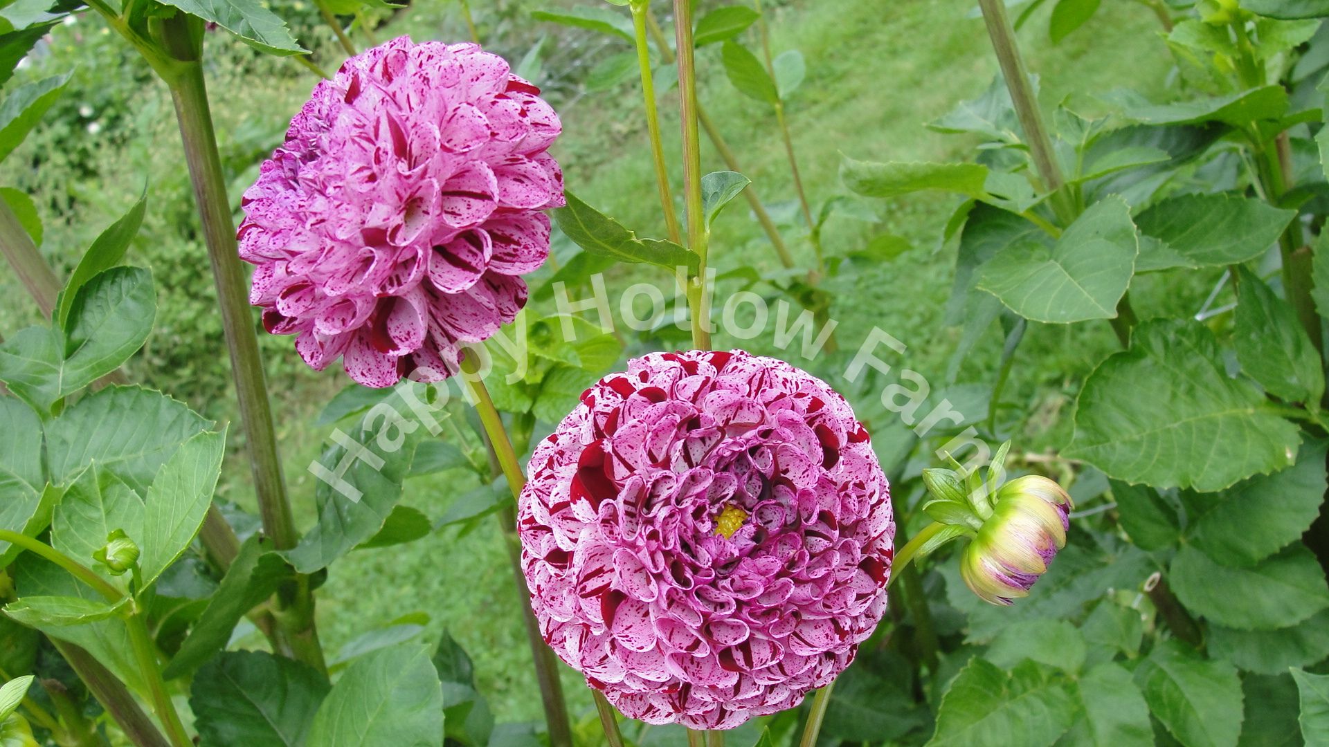 - 3" variegated purple and pink blossoms. Color varies with each bloom; very tall plant.