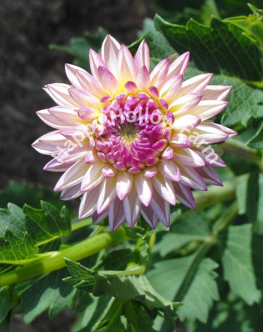 - 2-2 1/2" spiky, cream-blush blossoms whose petals are tipped in bright pink. Excellent cut flower.